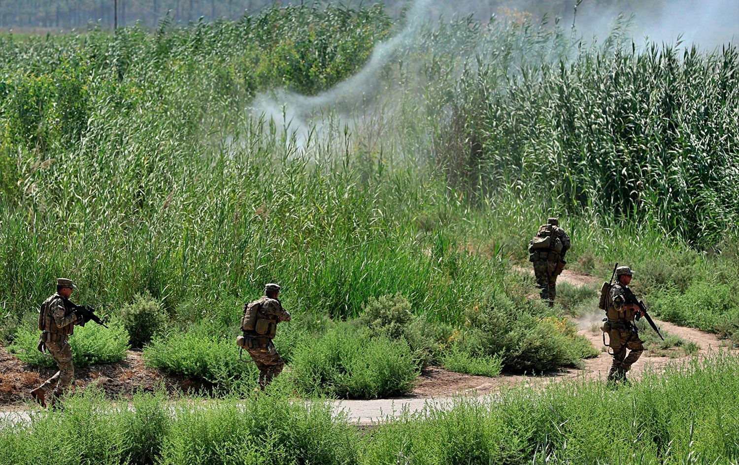 Iraqi security forces detonate an explosive device during a search operation in Tarmiyah, north of Baghdad, on July 23, 2019. Photo: Hadi Mizban/AP