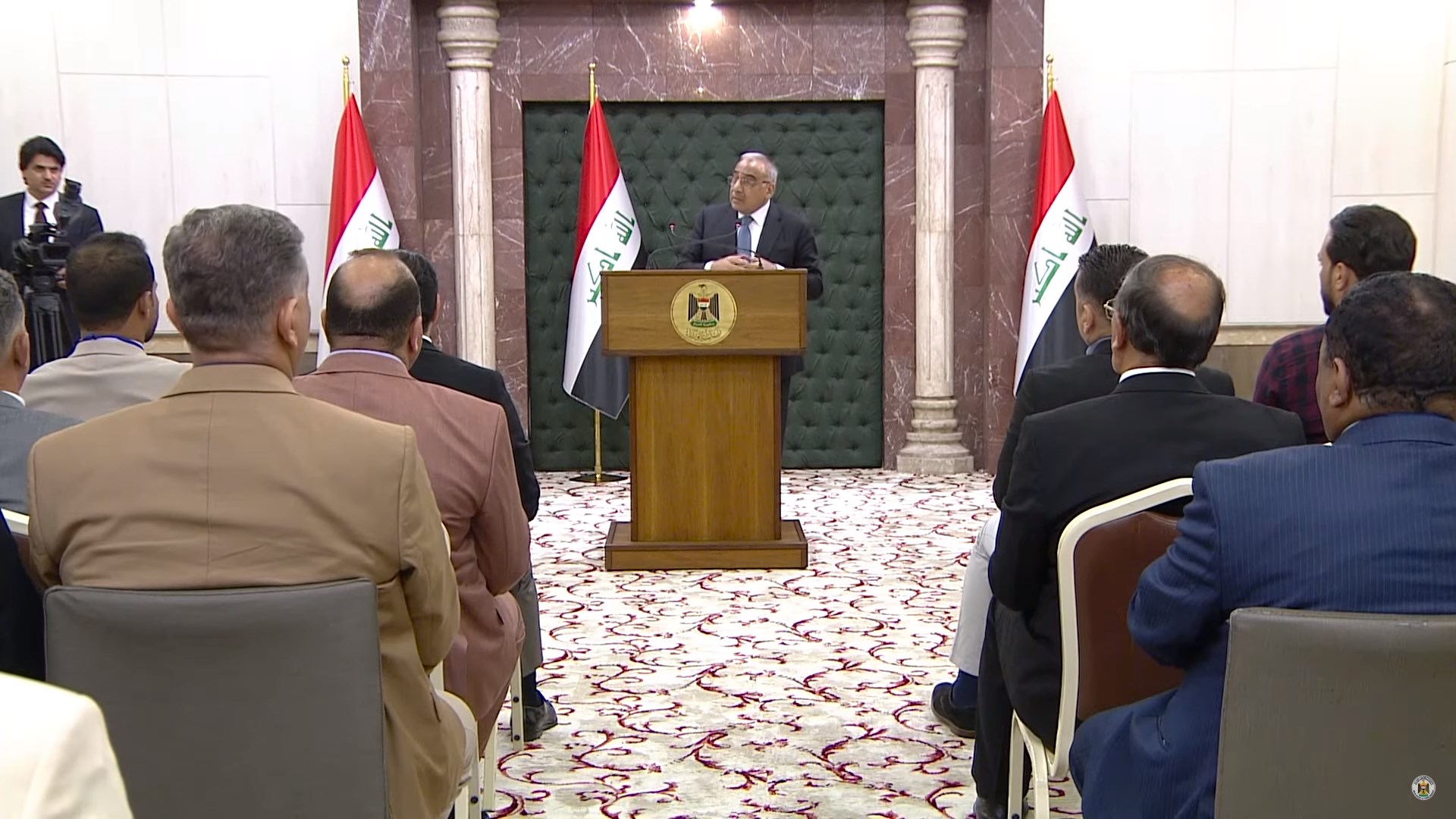 PM Abdil Abdul-Mahdi speaking at his weekly press conference on Tuesday, June 25, 2019. Photo: Screenshot social media