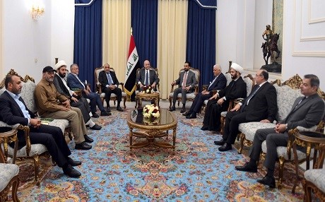 Iraq’s President Barham Salih, Prime Minister Adil Abdul-Mahdi, and Speaker of the Council of Representatives Mohammed al-Halbousi met with Falih al-Fayadh, head of the Popular Mobilization [Forces] Commission and other leaders on Monday. They praised the PMF – known as Hashd al-Shaabi in Arabic – for its role in combating ISIS, according to a readout published by the Iraqi Presidency Media Office.