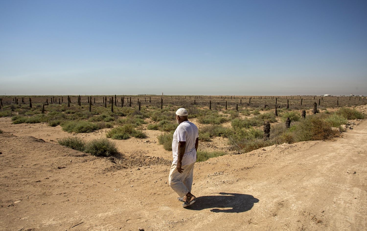 An Iraqi farmer looks at his land in Iraq's southern port city of al-Faw, 90 km south of Basra on August 17, 2020. Photo:Hussein Faleh/ AFP