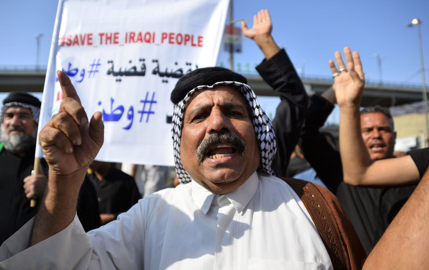 Iraqi protestors take part in anti-government demonstrations in the central city of Najaf on October 25, 2019. Photo: Haidar Hamdani/AFP