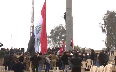 MOSUL, Iraq — Government forces raise what they claim to be the biggest Iraqi flag in a ceremony in front of Mosul University, in the eastern half of the city which came under the army control this week, replacing that of their ISIS adversary.
