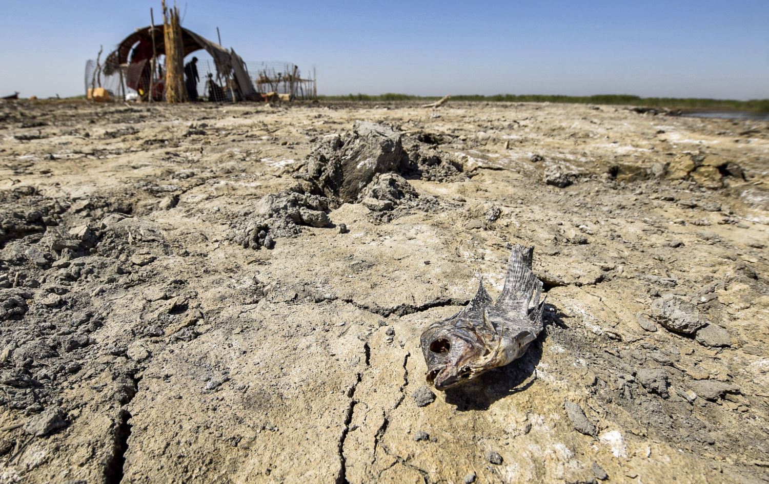 The body of a dead fish lies on drying earth in the Chibayish marshland in Iraq's southern Ahwar area. Photo: Asaad Niazi/AFP