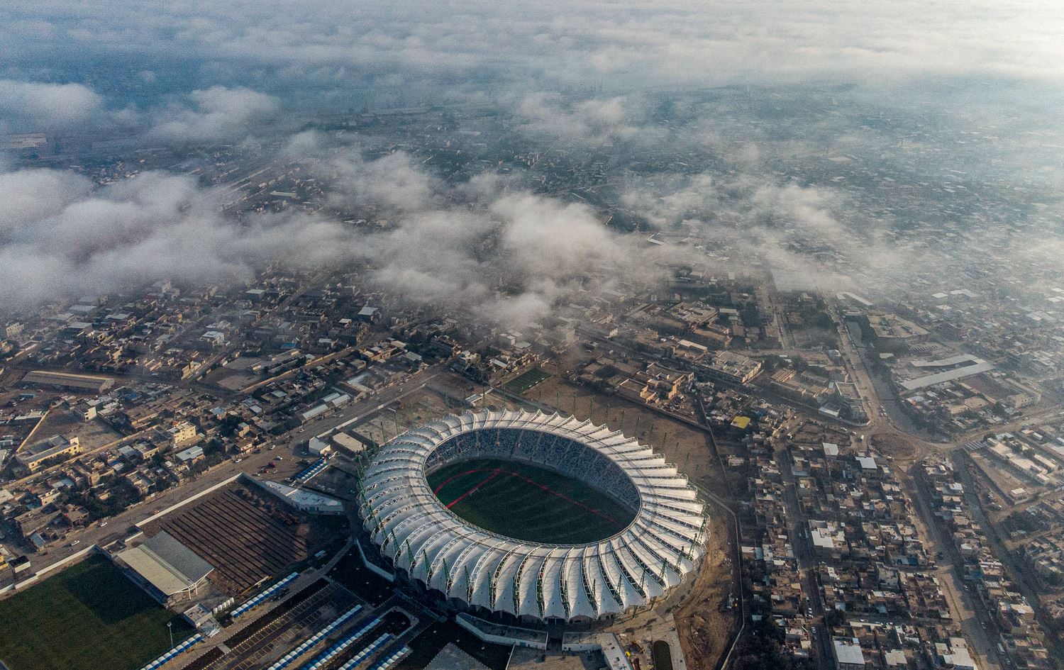 Aerial view of the New Minaa Olympic Stadium, built to accomodate 30,000 spectators, in Iraq's southern city of Basra on December 26, 2022. Photo: Hussein Faleh/AFP