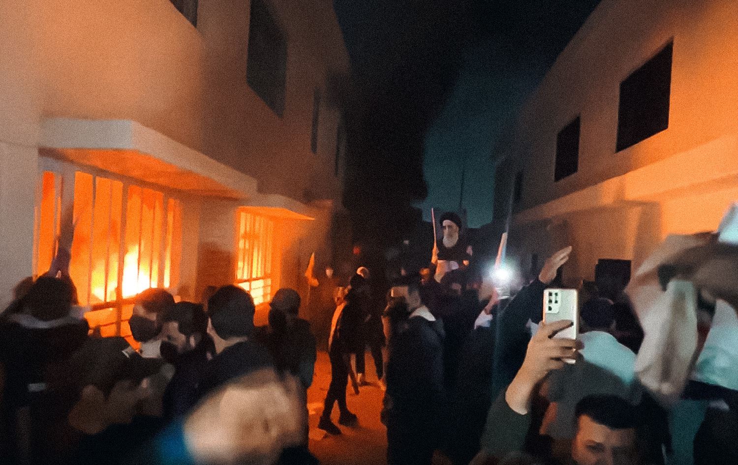 ERBIL, Kurdistan Region - Hundreds of angry vigilantes from pro-Iran parties and militia groups set the main building of the Kurdistan Democratic Party (KDP) in the Iraqi capital on fire in the early hours of Monday after a former KDP parliamentary candidate made remarks criticizing the top Shiite authority in the country.