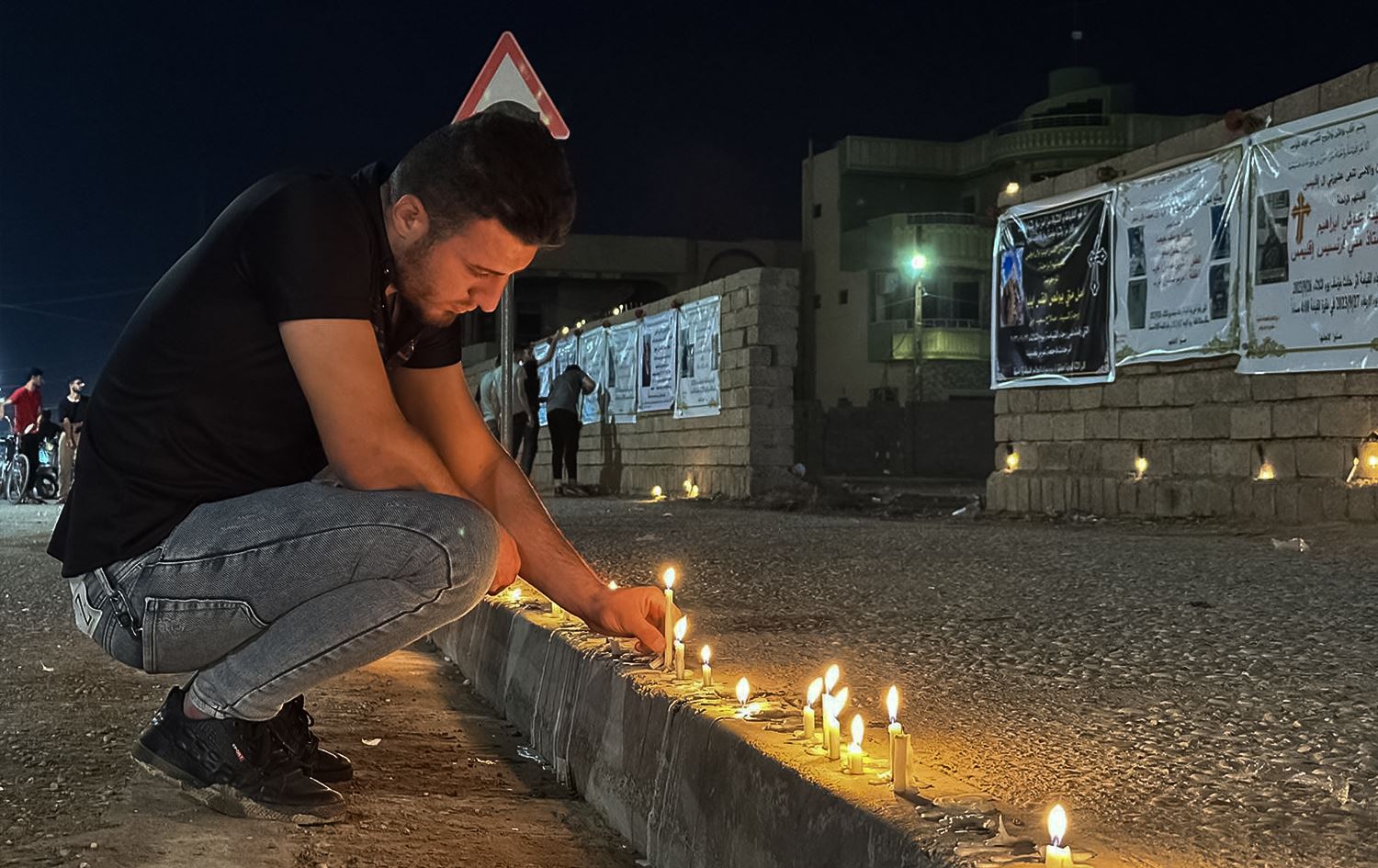Mourner lights candle to honor the victims of the tragic blaze on September 27, 2023 in Nineveh's Hamdaniya district. Photo: Rudaw