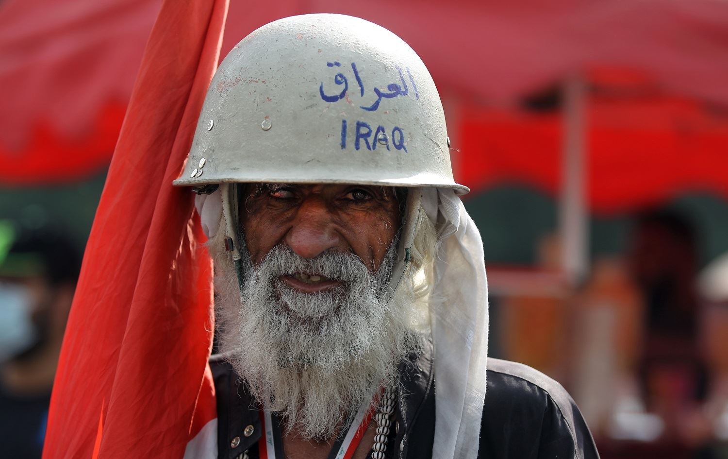 An Iraqi protester during a gathering in Baghdad's landmark Tahrir Square on October 27, 2020. Photo: Ahmad al-Rubaye/AFP