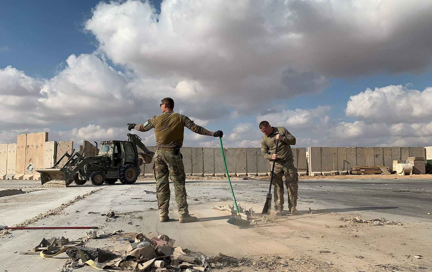 US soldiers clear rubble at Ain al-Asad military airbase in the western Iraqi province of Anbar, January 13, 2020. Photo: Ayman Henna / AFP