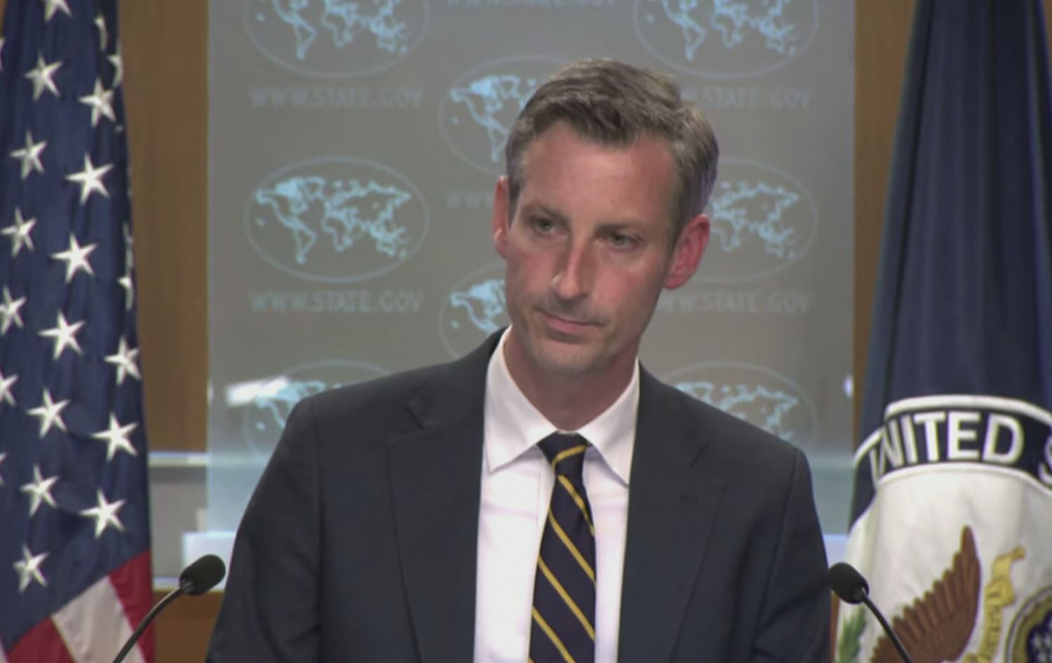US State Department Spokesperson Ned Price briefing reporters in his daily presser on July 28, 2022. Photo: screenshot/US Department of State