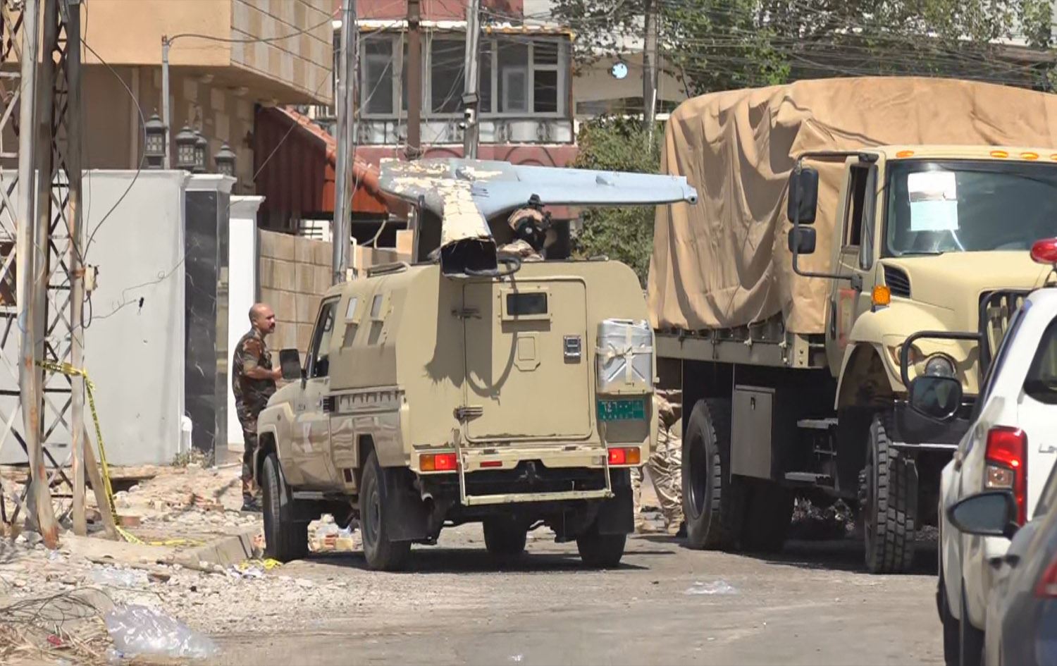 Security forces cordoning off the site where the Turkish drone fell in Kirkuk on August 29, 2024. Photo: Rudaw