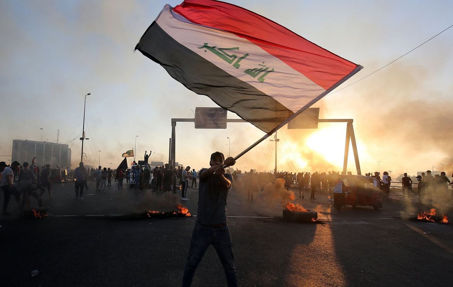 An Iraqi protester waves the national flag during a demonstration in the Iraqi capital Baghdad on October 5, 2019. Photo: Ahmad al-Rubaye / AFP