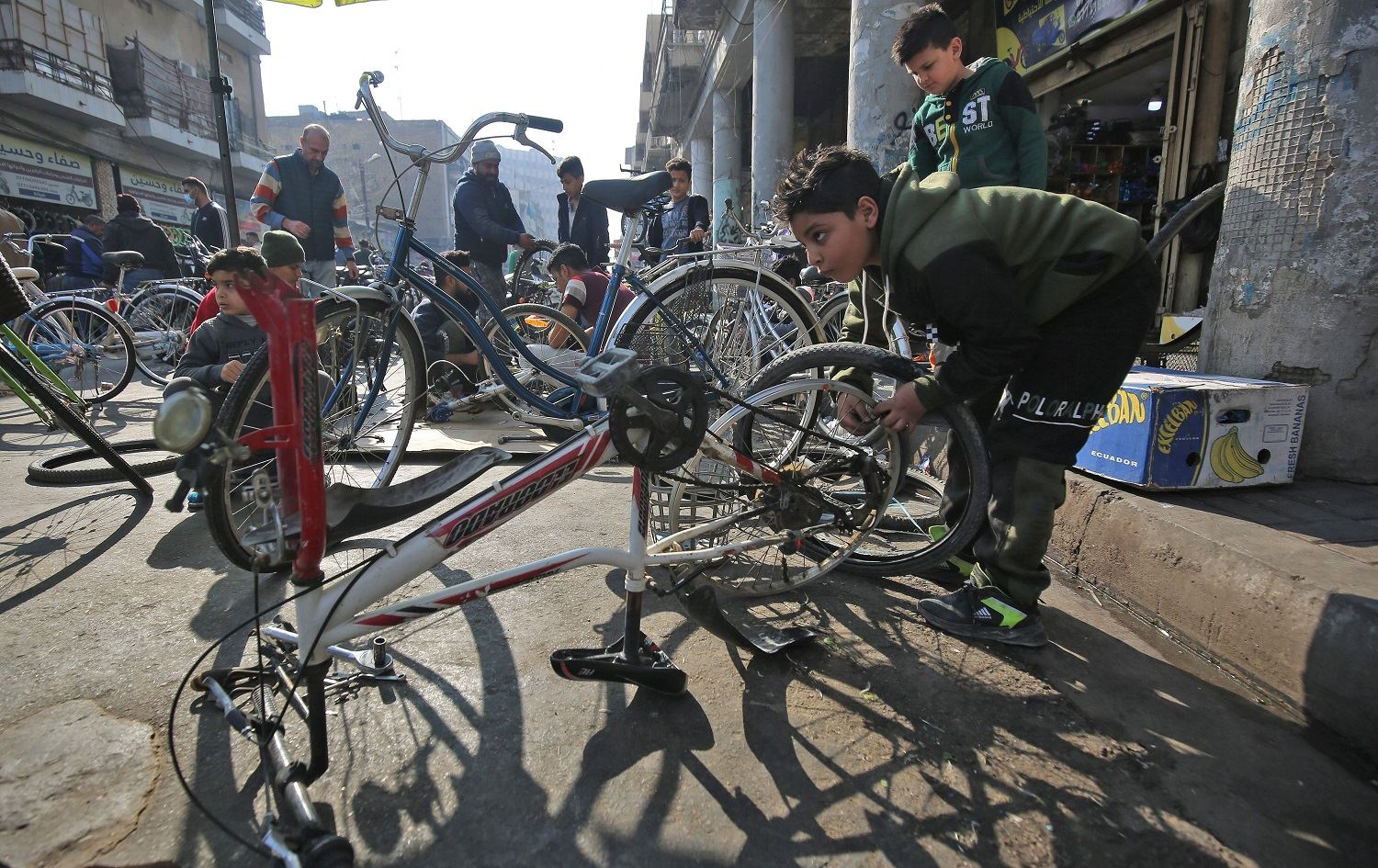 An Iraqi boy repairs bicycles in the Sadriya market in central Baghdad on January 15, 2021. Photo: Ahmad al-Rubaye/AFP