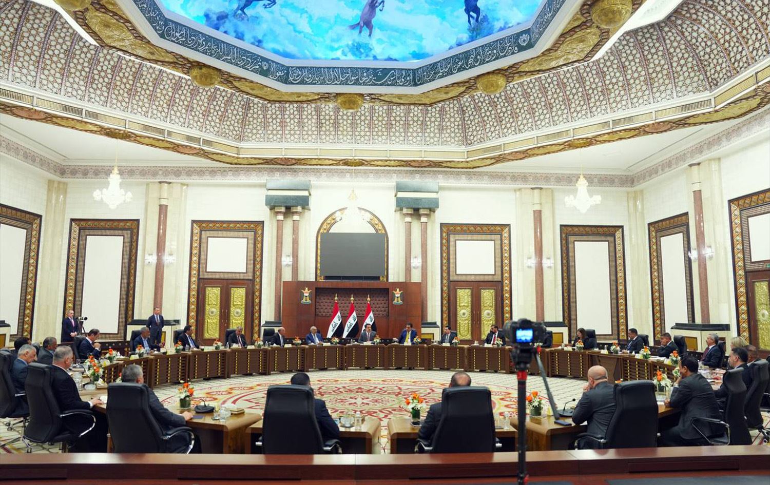 Iraqi Prime Minister Mohammed Shia’ al-Sudani holding a meeting at the Government Palace in Baghdad with heads of parliamentary blocs on January 29, 2025. Photo: Sudani’s office