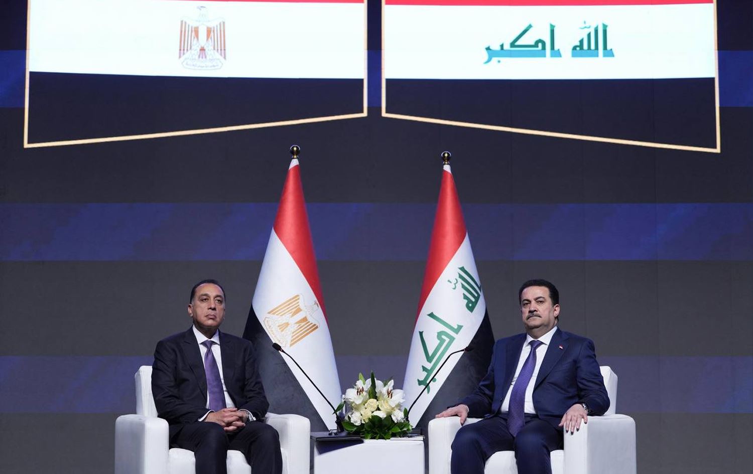 Iraqi PM Mohammed Shia’ al-Sudani (right) and Egytian PM Mostafa Madbouly (left) at the Iraqi-Egyptian Economic Forum in Baghdad on January 30, 2025. Photo: Sudani’s office
