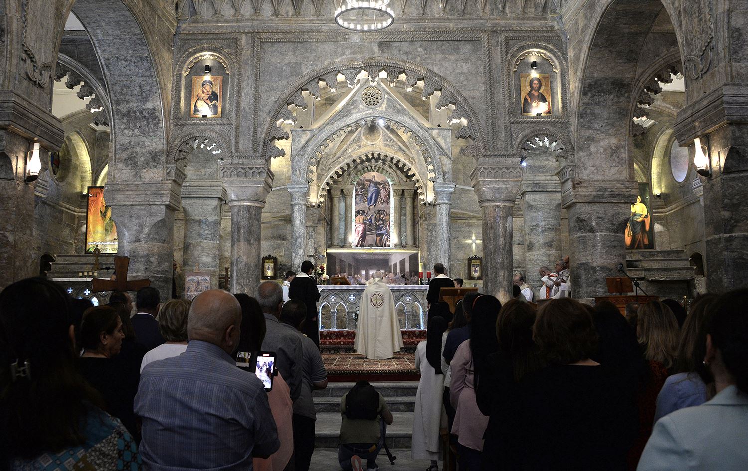 MOSUL, Iraq - Dozens of faithful celebrated mass Saturday at a Mosul church in northern Iraq for the first time since it was restored after its ransacking by Islamic State jihadists.