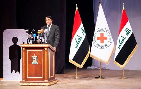 Secretary General of the Iraqi Council of Ministers Hameed al-Ghathi speaking at an International Committee of the Red Cross event in Baghdad on August 29, 2019. Photo: Iraqi Council of Ministers