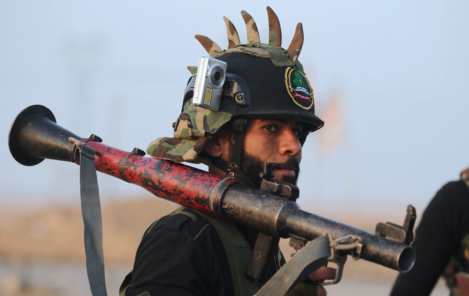 A Shiite militia fighter patrols in the Iraqi village of Ayn Nasir, south of Mosul, October 29, 2016. Photo: Ahmad al-Rubaye / AFP