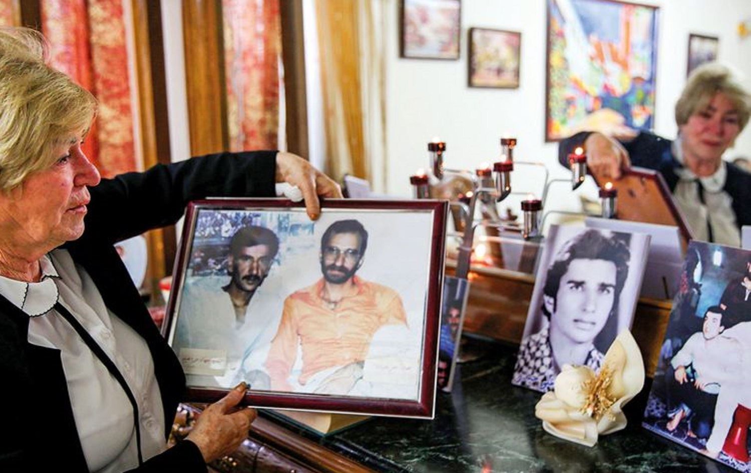 Samya Khasro, a woman from Iraq’s Shiite Kurdish minority, displays pictures of family members who disappeared 35 years ago in Baghdad last month. Photo: AFP