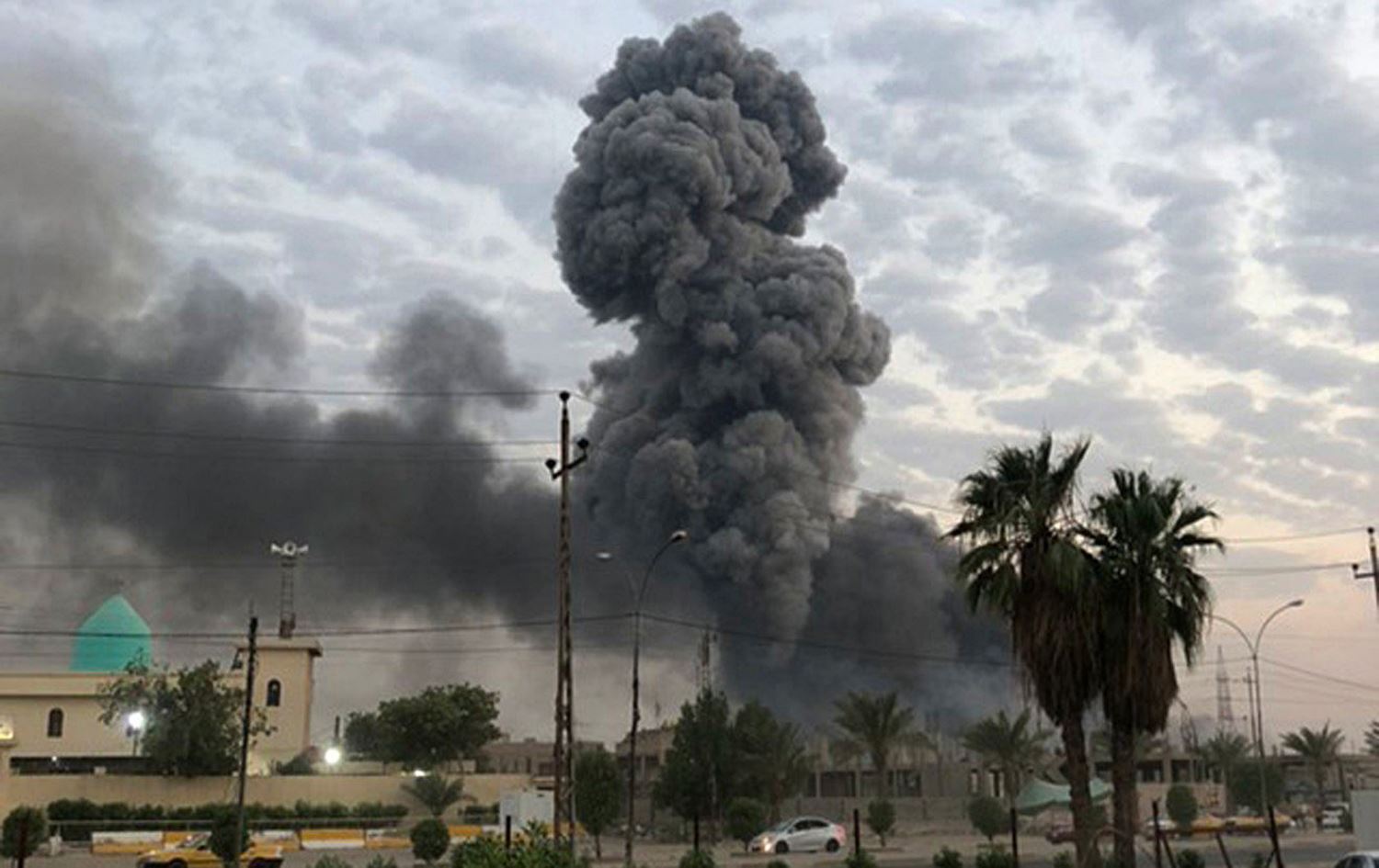 Smoke rises after an explosion at al-Saqr military base, belonging to Hashd al-Shaabi (Popular Mobilization Forces, PMF), in the Dora neighborhood of Baghdad on August 13, 2019. Photo: Loay Hameed / AP