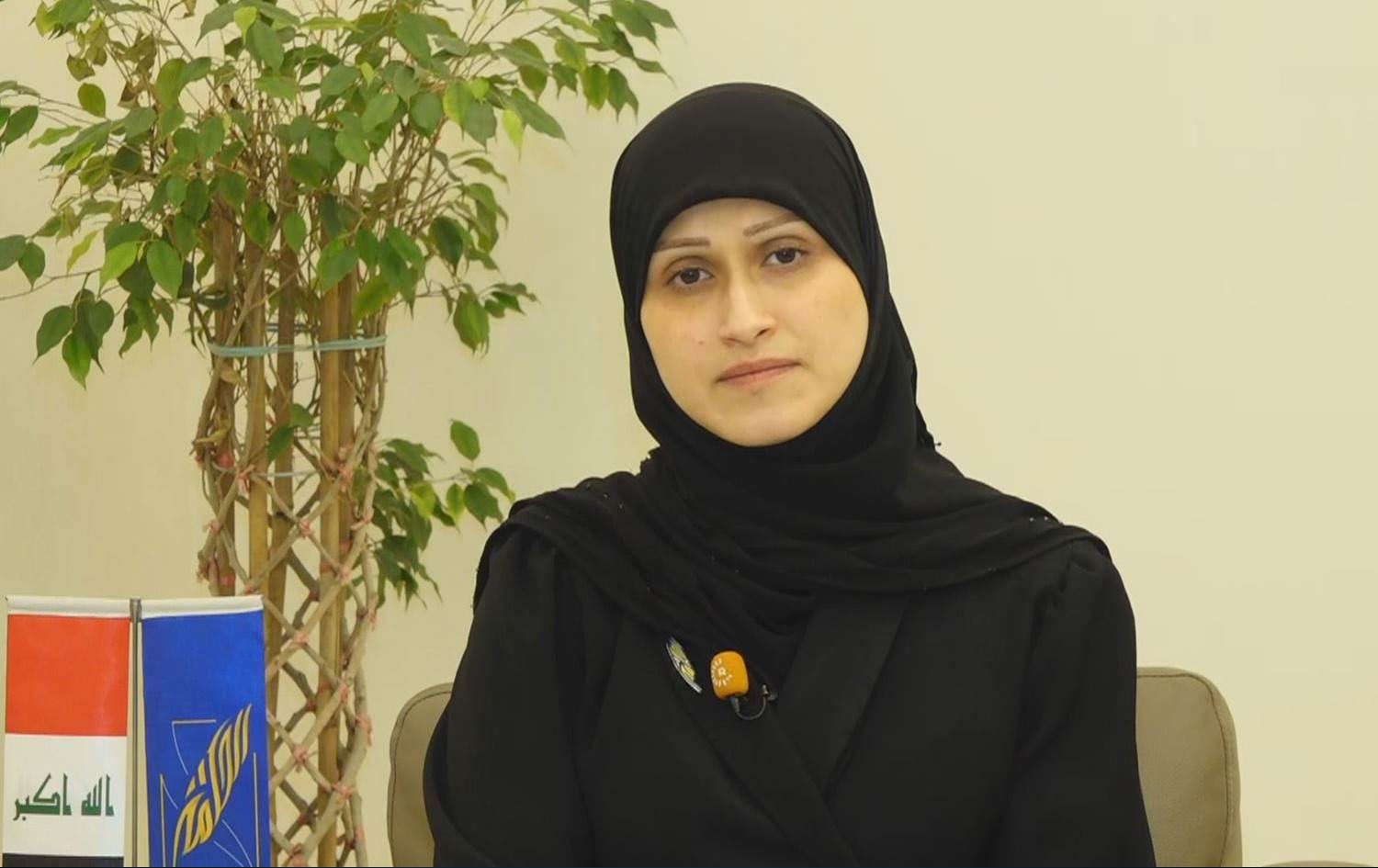 Zahra Kadhim, a politburo member of the Shiite National Wisdom Movement speaking to Rudaw on September 29, 2024. Photo: Rudaw