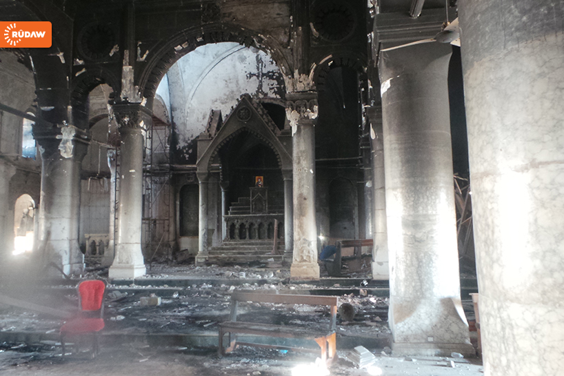 In its two year sway over Hamdaniya, ISIS left the town in ruins, destroying and damaging churches and the places of worship of the Christian population.
