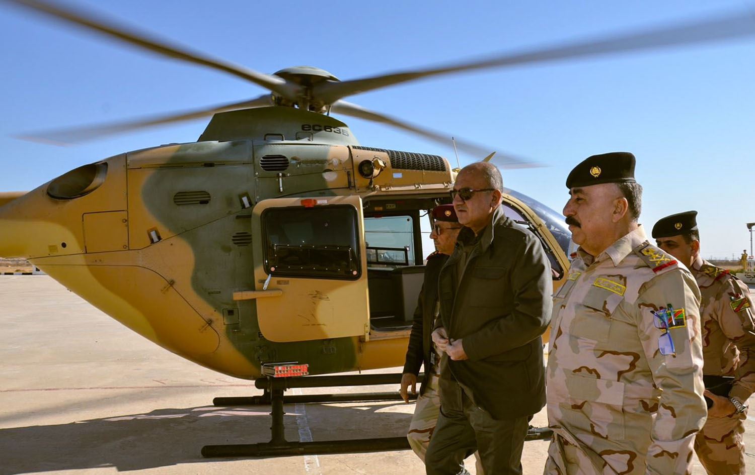 Iraq’s Defense Minister Thabet al-Abbasi landing in Nineveh on November 30, 2024. Photo: Iraqi defense ministry.