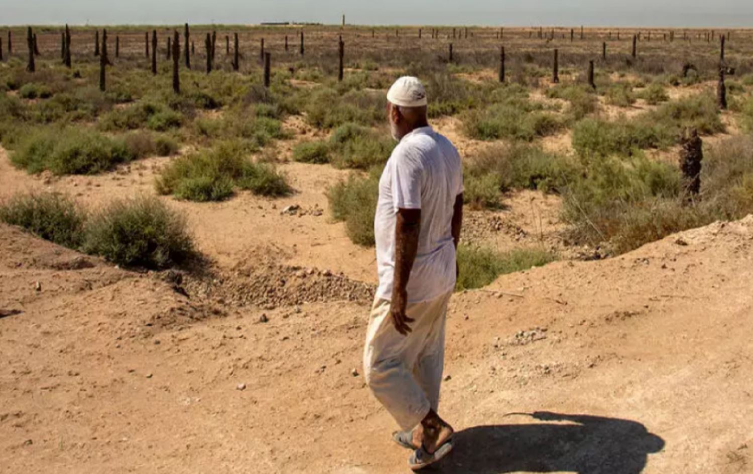 An Iraqi farmer looks at his land in Iraq's southern port city of al-Faw, 90 kilometers south of Basra near the Shatt al-Arab and the Gulf on August 17, 2020. Photo: Hussein Faleh /AFP