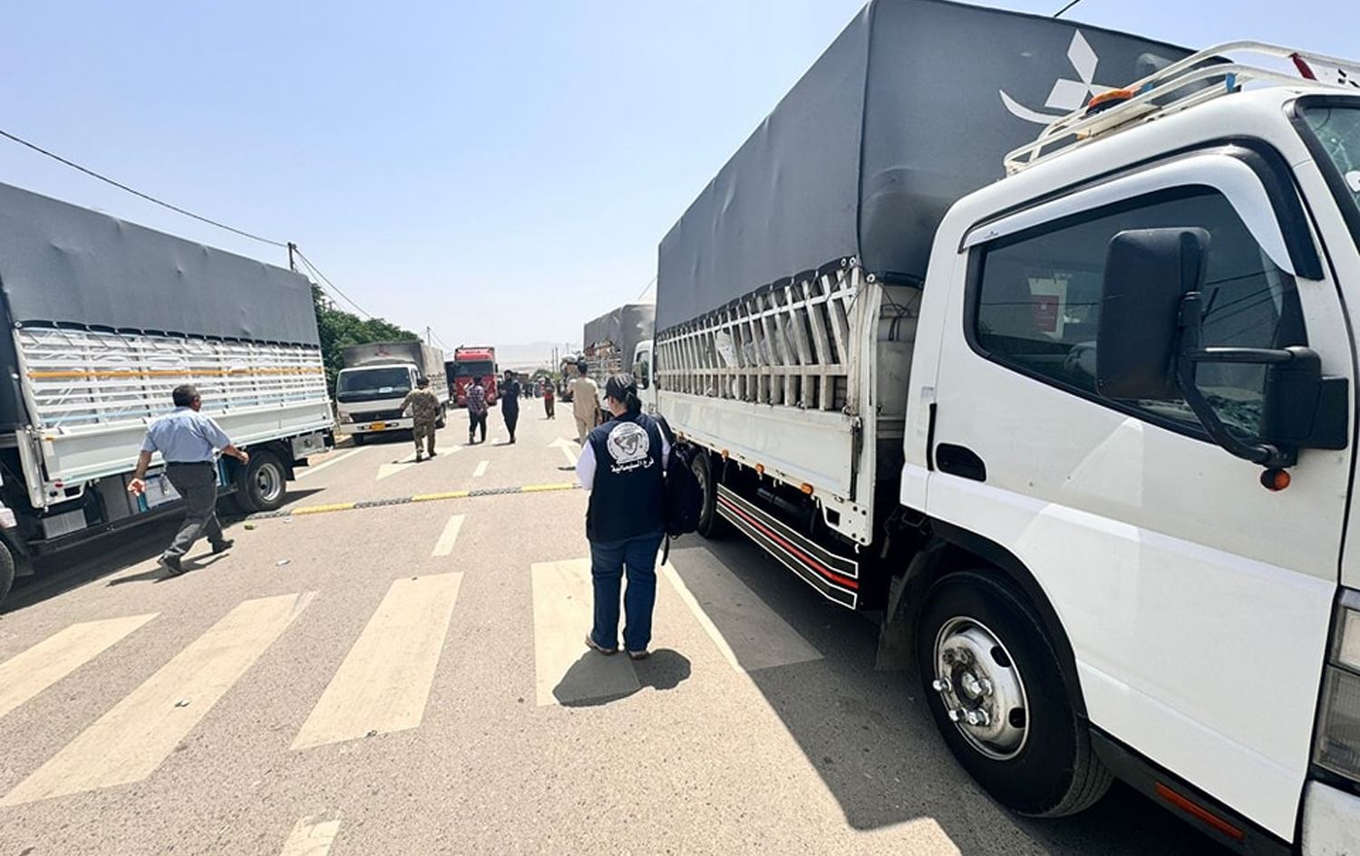Trucks loaded with goods preparing for the return of the IDPs to their home towns on May 30, 2024. Photo: Iraqi migration ministry