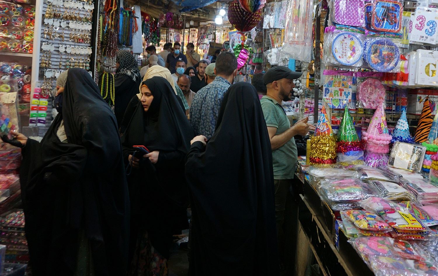 People shop at the Shorja market in central Baghdad ahead of the Muslim Eid al-Adha holiday amid the COVID-19 pandemic, on July 28, 2020. Photo: Sabah Arar/AFP