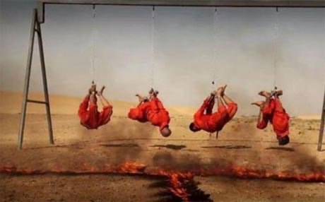 ERBIL, Kurdistan Region — The Islamic State has released video footage allegedly showing the jihadists burning alive four Hashd al-Shaabi Shiite militia members in retaliation for what the group says was the burning alive of an ISIS member by a prominent Shiite militant named Abu Azrael, ISIS’ Anbar province media office said Monday.