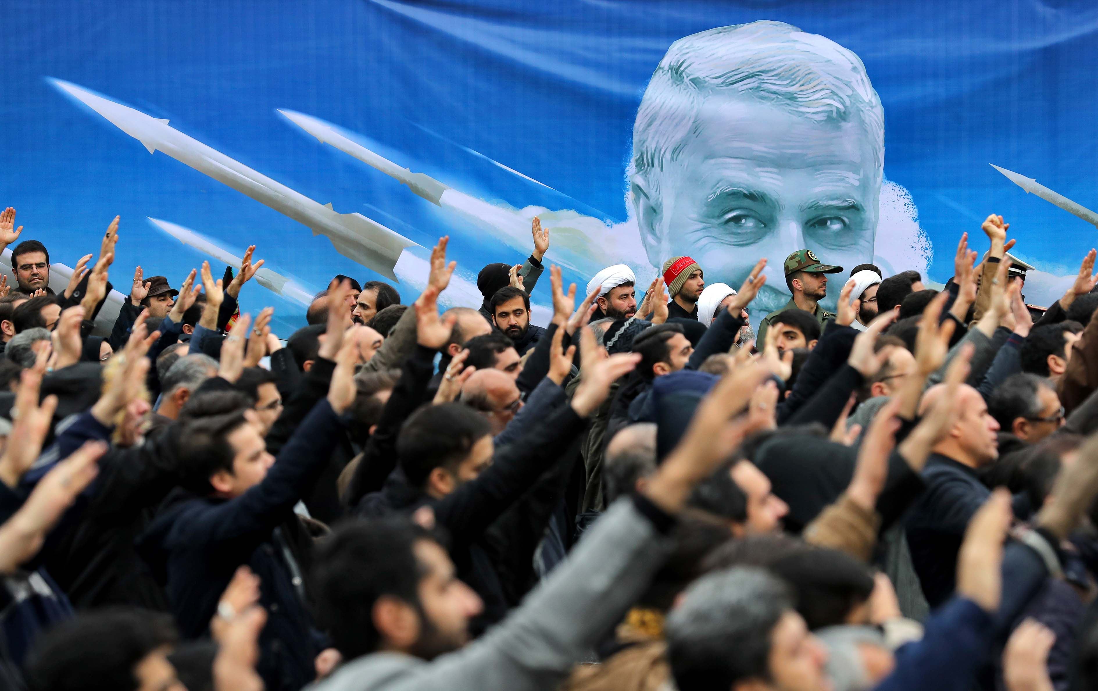 Protesters in Tehran demonstrate on January 4, 2020 over the US airstrike in Iraq that killed Iranian General Qasem Soleimani. Photo: Ebrahim Noroozi / AP