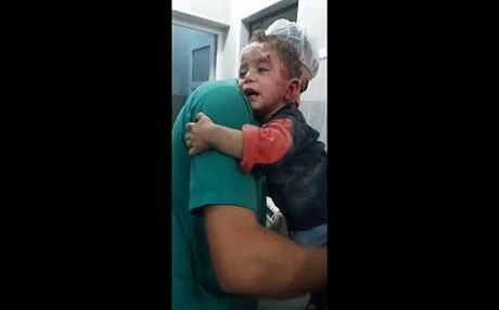 Elsewhere in Aleppo, an injured, traumatized child cried and clung to a nurse treating him in hospital in a video published by the Syrian American Medical Society (SAMS) on Twitter.