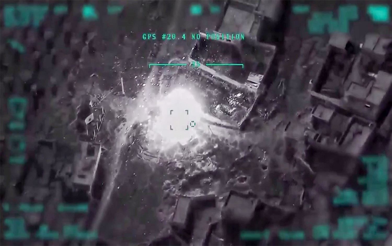 An image grab taken from a video released on March 1, 2020 by the Turkish Defence Ministry shows an airstrike on a Syrian regime position. Photo: Turkish Defense Ministry / AFP