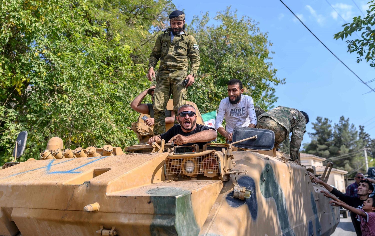 Turkey-backed Syrian National Army (SNA) fighters drive in Sanliurfa, on October 18, 2019. Photo: AFP / Bulent Kilic