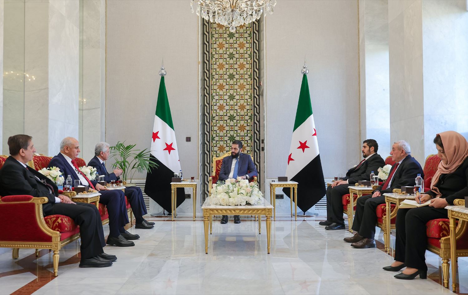 Syrian interim President Ahmed al-Sharaa, in a meeting with a high-level delegation from the Kurdish National Council (ENKS/KNC) in Damascus on February 3, 2025. Photo: Syrian Presidency