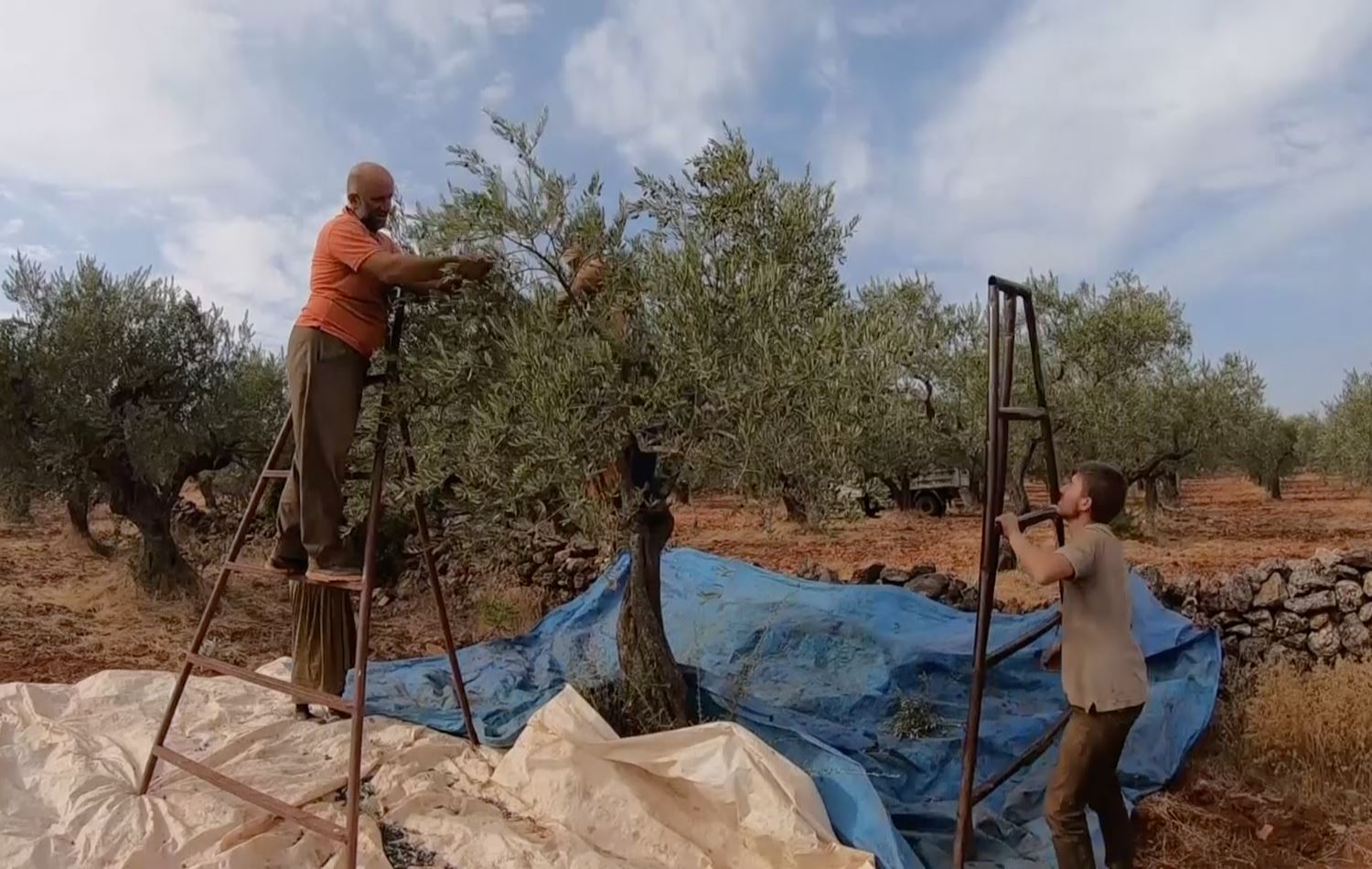 "The harvest season is usually next month, but because we fear military operations and airstrikes from the Syrian forces, we picked the olives a month earlier," explains Muhammad Al-Arab, a resident of the town of Al-Barah.