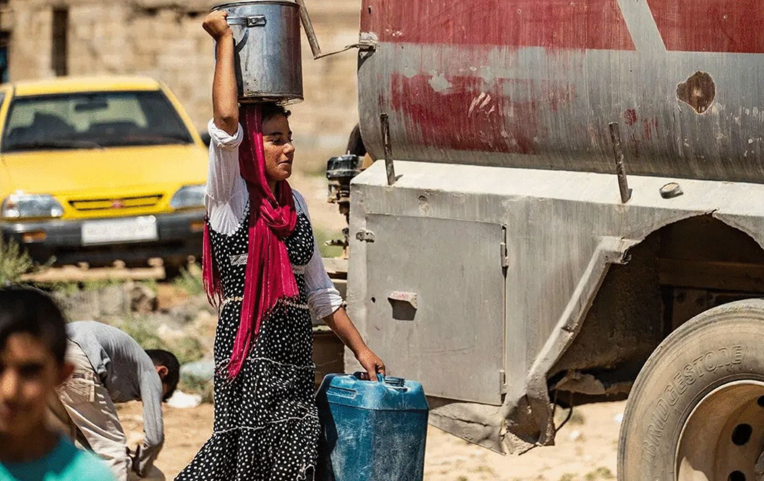 A Syrian girl carries a pot filled with water from cisterns provided by humanitarian organisations during a water outage in Syria's northeastern city of Hasakah on August 22, 2020. Photo: AFP