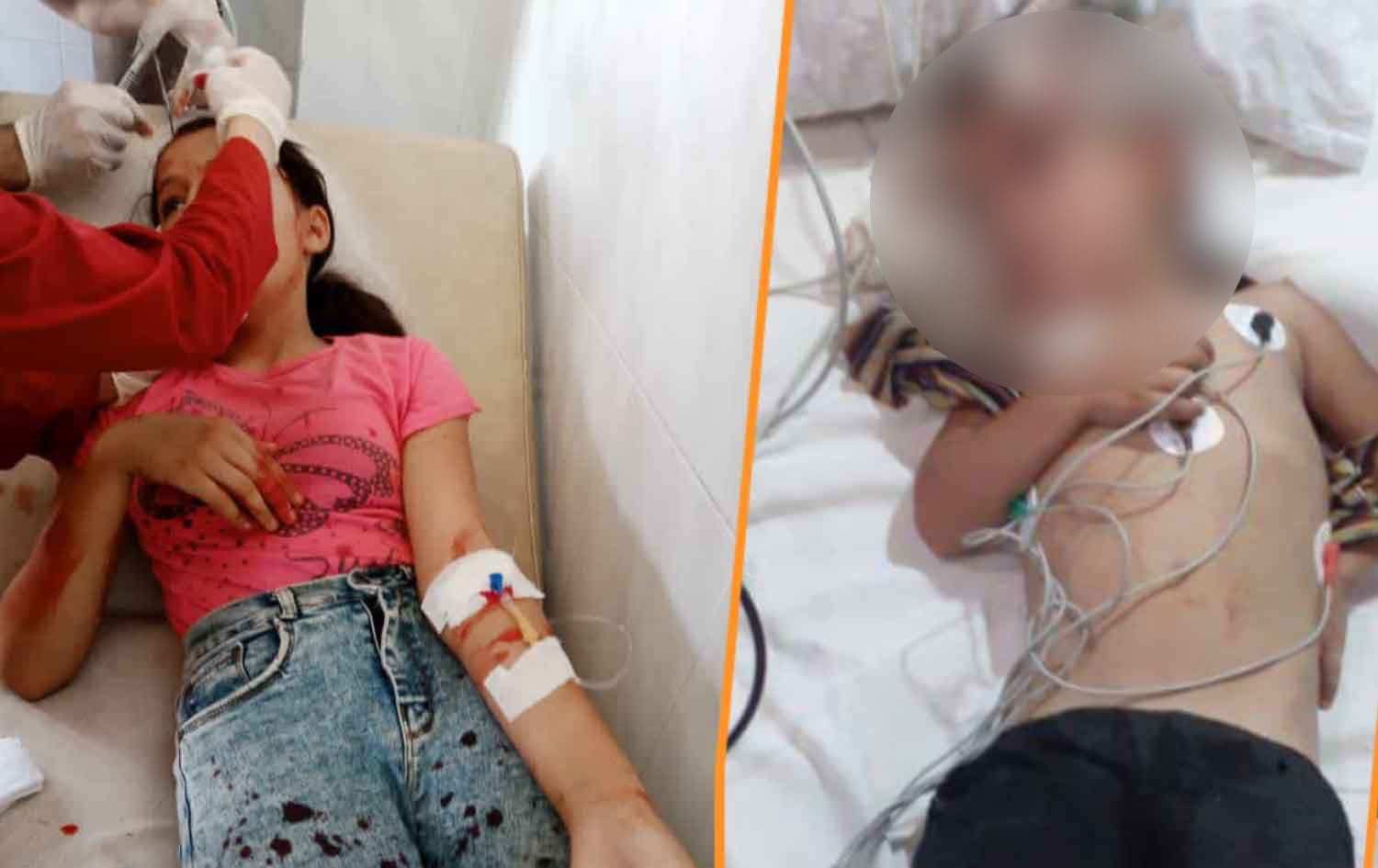Two of the children who were injured during a suspected Turkish drone attack in Tal Rifaat on August 4, 2022. Photo: SOHR