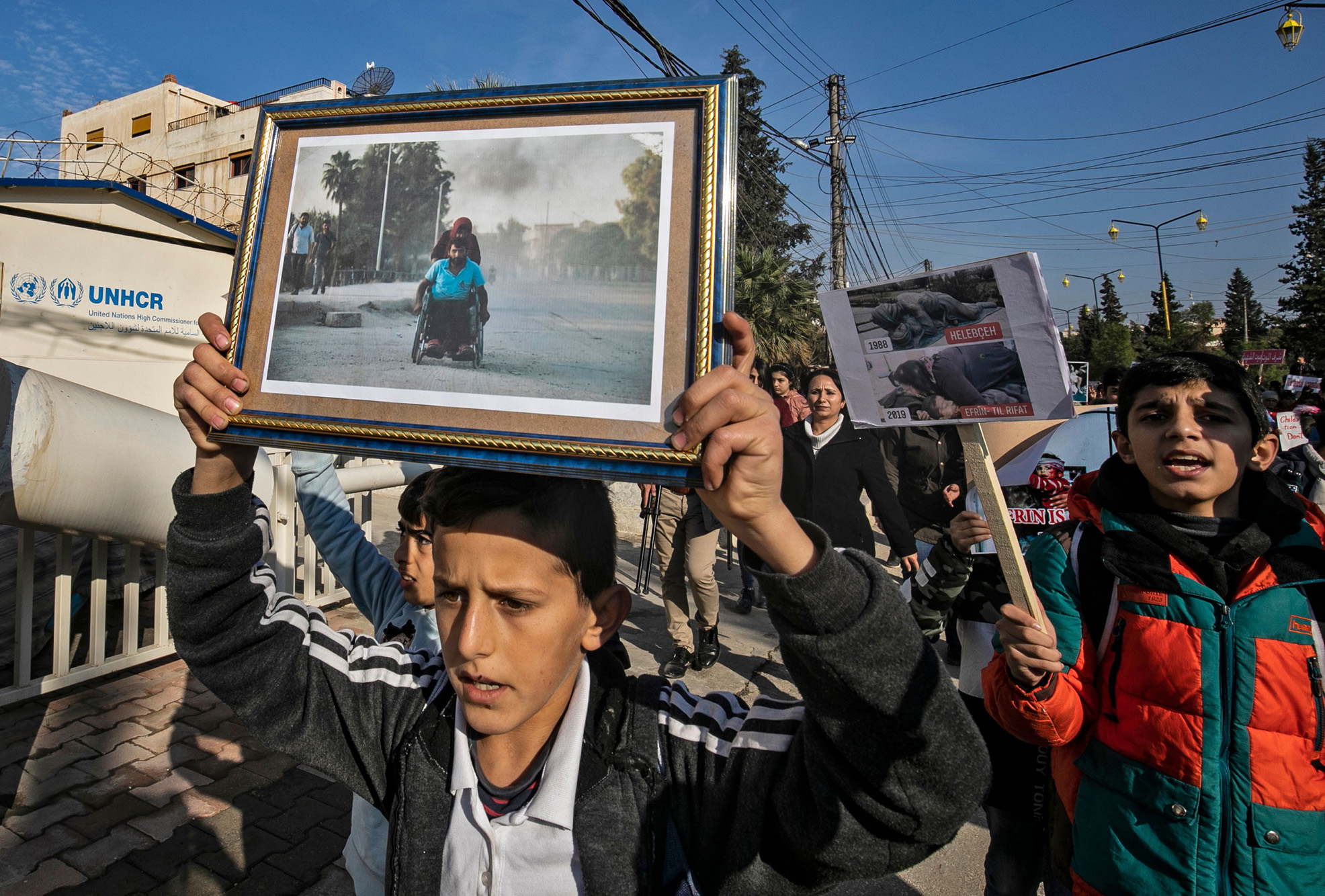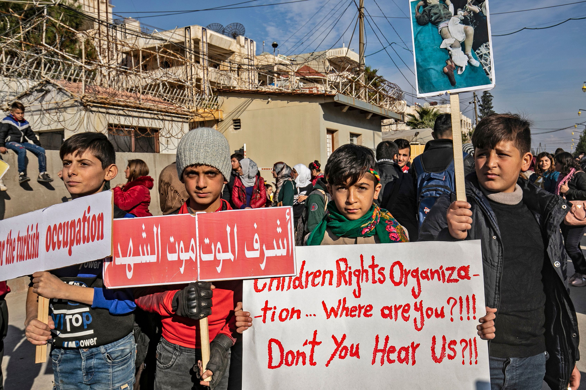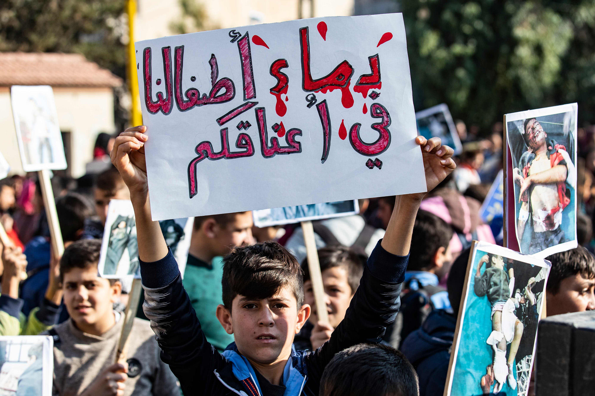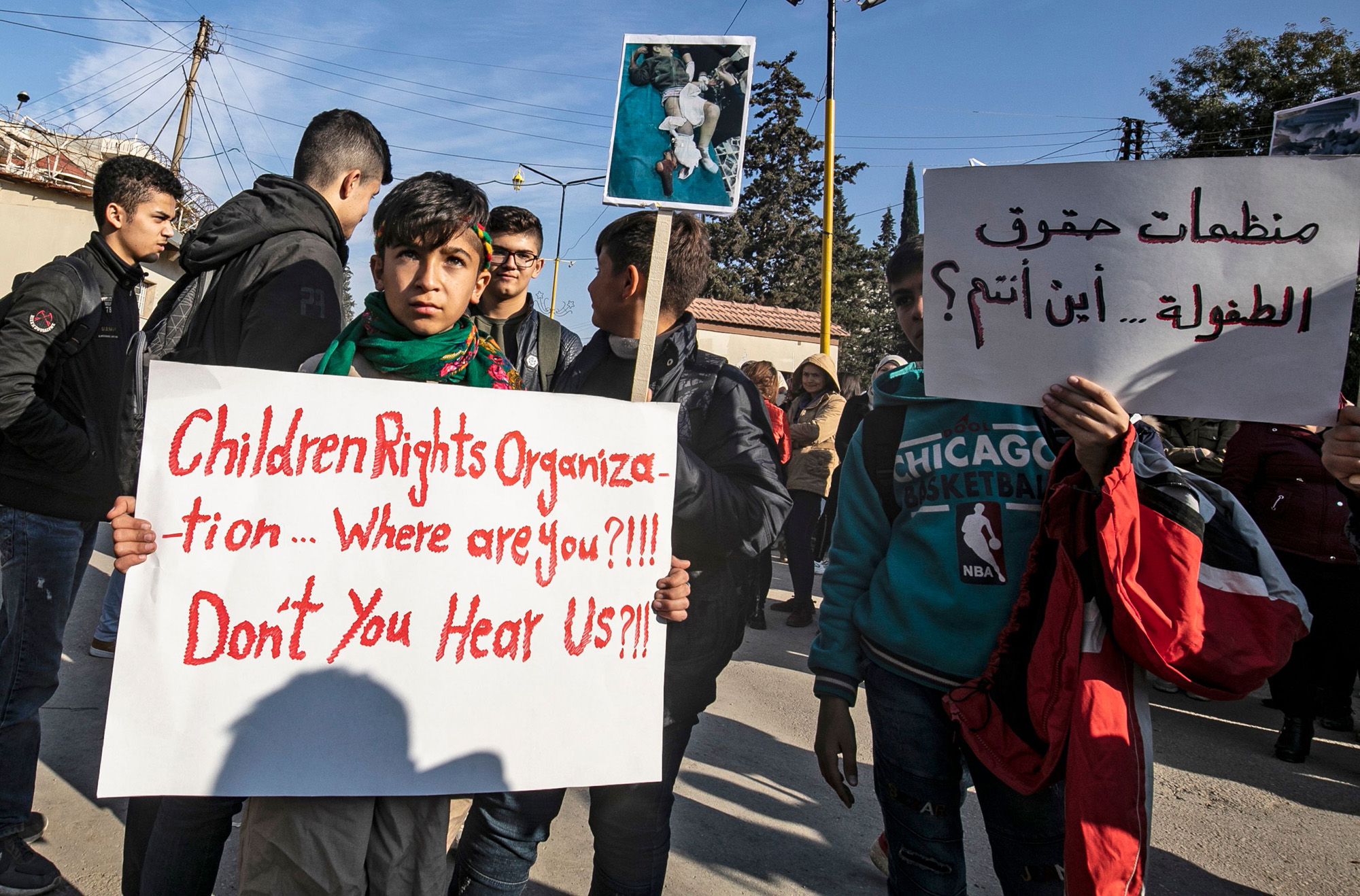 “Children’s rights organisations... where are you?” read one placard. Another compared Monday’s incident to the massacre of Kurds in northern Iraq, now the Kurdistan Region, in 1988.