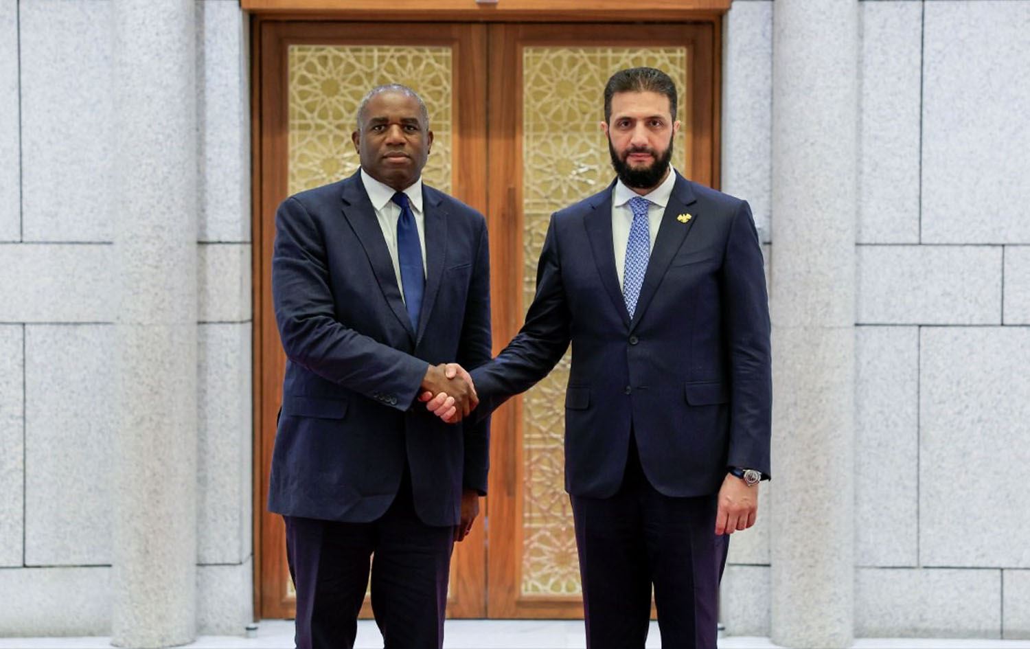 British Foreign Secretary David Lammy (Left) meeting with Syrian President Ahmad al-Sharaa (Right) in Damascus on July 5, 2025. Photo: Syrian Presidency