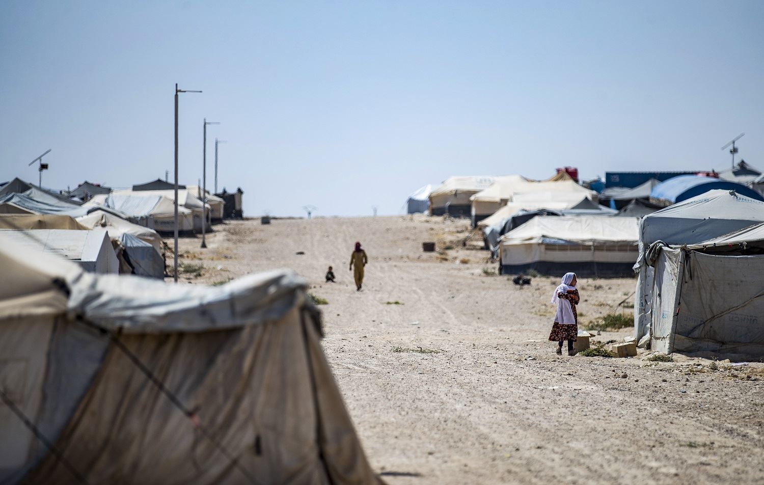 People walk past tents at al-Hol camp in the al-Hasaka governorate of northeastern Syria on August 25, 2020. Photo: Delil Souleiman / AFP