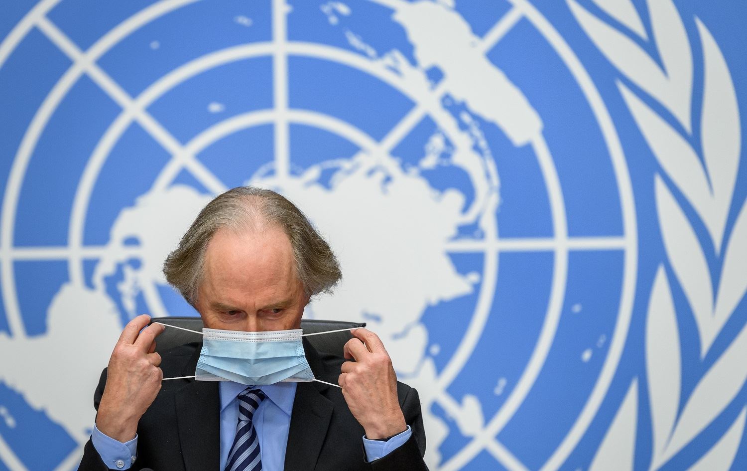 UN special envoy for Syria Geir Pedersen takes off his protective face mask upon his arrival for a press conference on November 29, 2020 at the United Nations Offices in Geneva. Photo: Fabrice Coffrini / AFP
