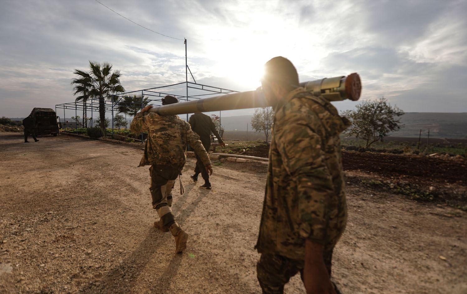 Anti-government fighters carry a rocket to be used against regime forces, in the northern outskirts of Syria's west-central city of Hama on December 4, 2024. Photo: BAKR AL KASSEM/AFP