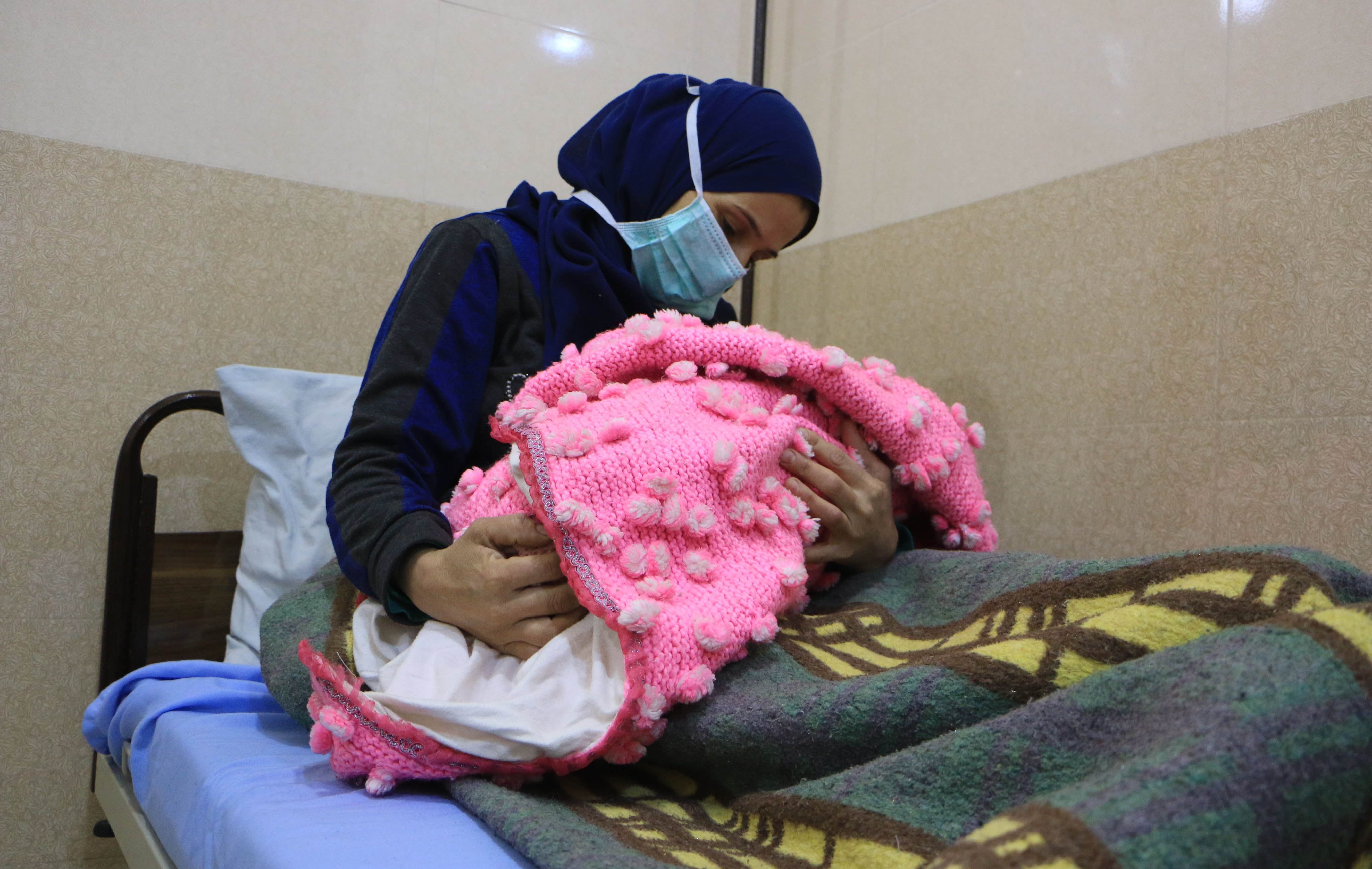 A displaced woman who gave birth to her fourth child at a hospital co-managed by MSF, the main hospital providing C-sections in the area, in February, 2022. Photo: MSF Syria/Twitter