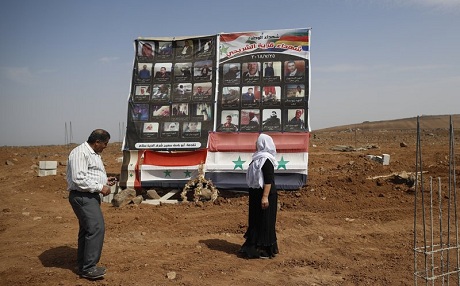 A Druze family visits a memorial erected in honor of the 37 Druze who killed during a stunning Islamic State attack at the village of Shreihi in the southern province of Sweida, Syria. Photo: Hassan Ammar/AP