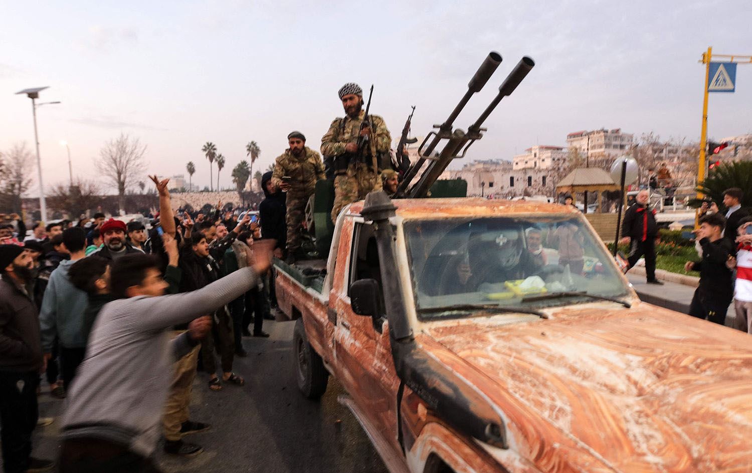 Residents take to the streets of Hama, to welcome anti government fighters after they took control of Syria's west-central city on December 5, 2024. Photo: Bakr Al Kassem / AFP