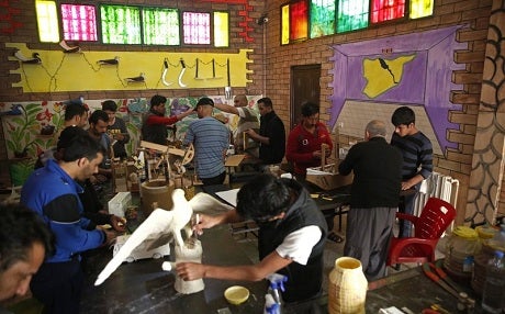 Prisoners work in a handicraft workshop in a prison housing former ISIS members in Qamishli. Photo: Hussein Malla/AP