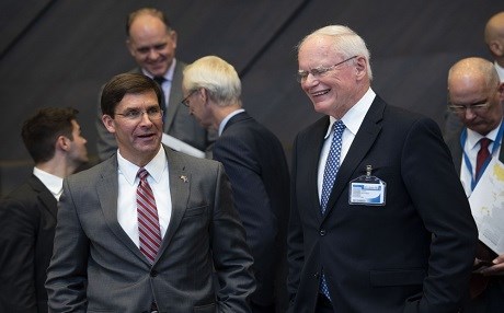Acting US Secretary of Defense Mark T. Esper talks with the US Special Representative for Syria Engagement, Ambassador James Jeffrey at NATO headquarters, Brussels, Belgium, on June 27, 2019. Photo: Lisa Ferdinando | US DoD