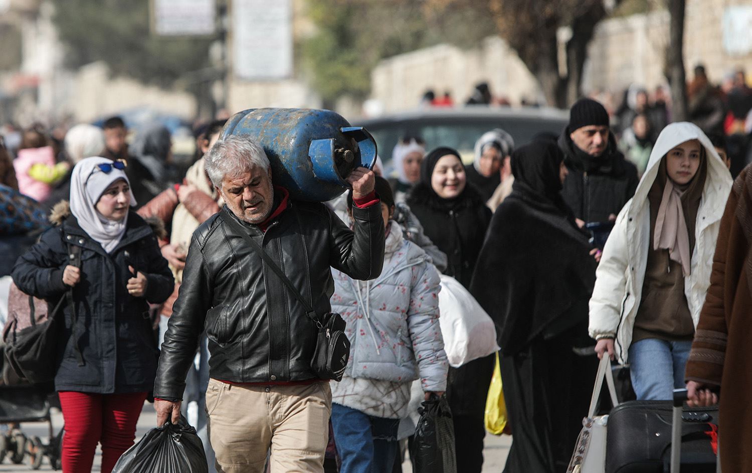 Residents of the Ashrafiyeh and Sheikh Maqsood neighborhoods flee violence in northern Aleppo on January 7, 2026. Photo: AFP