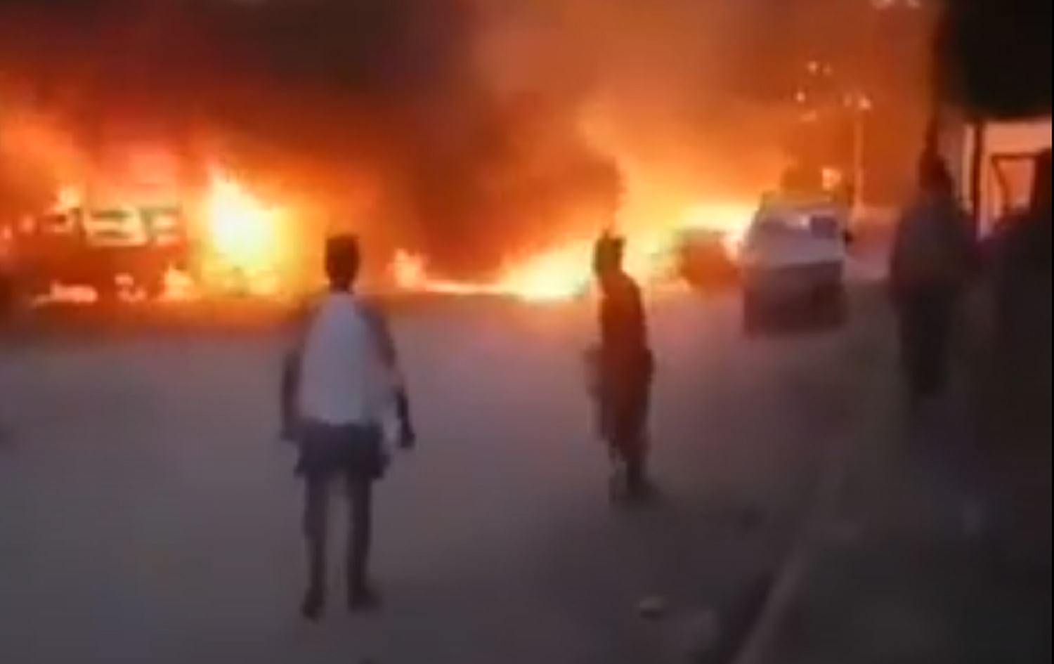 Screenshot of footage purportedly showing the aftermath of the car bombing in Tal Abyad (Gire Spi) on July 7, 2020. Video submitted to ANHA.